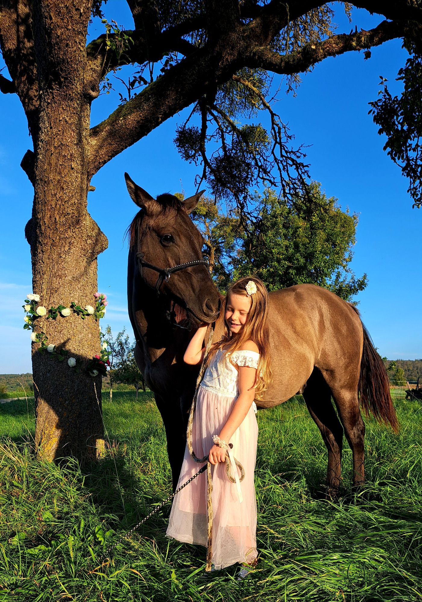 Faline ist ein abolutes Hosentaschenpferd. Sie liebt die Menschen. Dabei ist sie obercool und sehr selbstsicher. Sie wird ihrer pferdebegeisterten Familie und liebebevollen Besitzerin viel Freude machen.